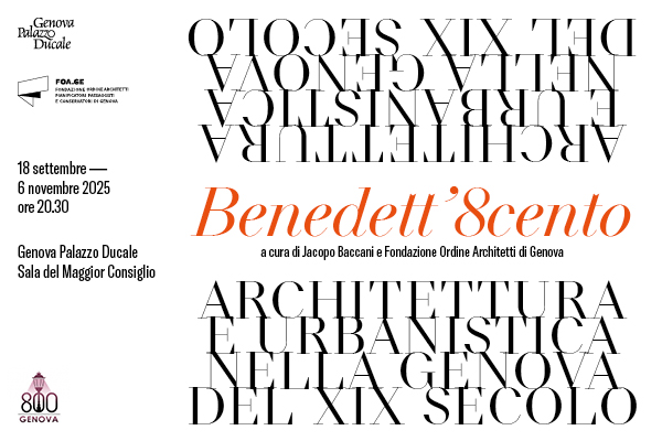 Dal 18 settembre al 6 novembre 2025, presso la Sala del Maggior Consiglio di Palazzo Ducale Genova si terrà la rassegna di incontri Benedett’Ottocento – Architettura e Urbanistica nella Genova del XIX secolo a cura di Jacopo Baccani e della Fondazione Ordine Architetti PPC di Genova.