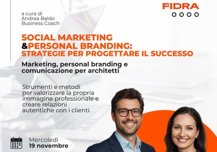 È un’iniziativa che Fidra dedica agli architetti e ai progettisti che desiderano approfondire strumenti e metodi per valorizzare la propria immagine professionale, costruendo una relazione più forte e autentica con i propri clienti.