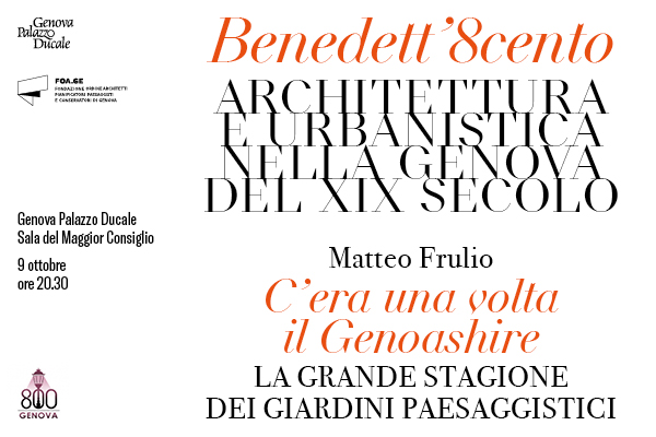 Giovedì 9 ottobre 2025, alle ore 20:30 nella Sala del Maggior Consiglio di Palazzo Ducale Genova, si terrà l’incontro C’era una volta il Genoashire. La grande stagione dei giardini paesaggistici con Matteo Frulio. L’evento fa parte del ciclo di incontri Benedett’Ottocento – Architettura e Urbanistica nella Genova del XIX secolo a cura della Fondazione Ordine Architetti PPC di Genova.