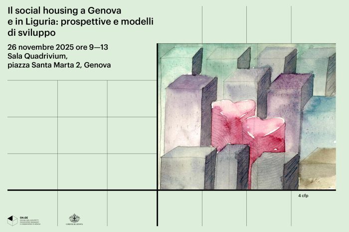 Mercoledì 26 novembre 2025, dalle ore 9:00 alle ore 13:00, nel Salone Principale della Sala Quadrivium (piazza Santa Marta, 2) si svolgerà il convegno Il social housing a Genova e in Liguria: prospettive e modelli di sviluppo promosso dall’Ordine degli Architetti Pianificatori, Paesaggisti e Conservatori di Genova. Sarà un’occasione per approfondire il tema del social housing e delle sue prospettive di sviluppo nel contesto genovese e ligure, mettendo a confronto esperienze nazionali e internazionali e analizzando strategie, modelli e politiche pubbliche dedicate all’abitare sociale. Iscrizione su Formagenova.it – 4 CFP deontologici.