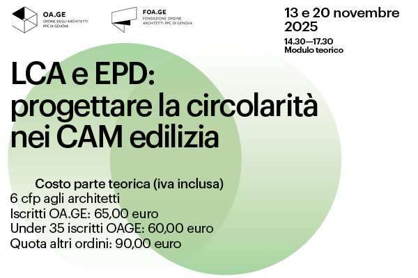 Il corso teorico si terrà il 13 e il 20 novembre 2025 in modalità webinar su Formagenova.it, dalle 14:30 alle 17:30. Fornisce strumenti pratici per applicare l’analisi del ciclo di vita (LCA) in edilizia, valutare l’impatto ambientale di prodotti ed edifici e utilizzare in modo efficace le EPD. Un’opportunità per acquisire competenze utili a garantire sostenibilità e conformità ai CAM Edilizia (D.M. 23/06/2022).