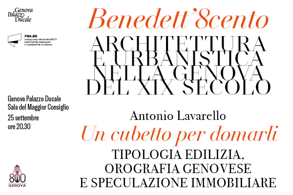 Giovedì 25 settembre 2025, alle ore 20:30 nella Sala del Maggior Consiglio di Palazzo Ducale Genova, si terrà l’incontro Un cubetto per domarli. Tipologia edilizia, orografia genovese e speculazione immobiliare con Antonio Lavarello. L’evento fa parte del ciclo di incontri Benedett’Ottocento – Architettura e Urbanistica nella Genova del XIX secolo a cura della Fondazione Ordine Architetti PPC di Genova.