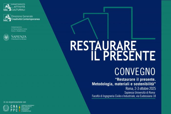 Il 2 e 3 ottobre 2025 si svolgerà a Roma il convegno dedicato al restauro dell’architettura contemporanea dal titolo Restaurare il presente. Metodologia, materiali e sostenibilità, promosso dalla Direzione Generale Creatività Contemporanea del Ministero della Cultura e dal Dipartimento di Ingegneria Civile, Edile e Ambientale della Facoltà di Ingegneria Civile e Industriale della Sapienza Università di Roma, in co-organizzazione con il CNAPPC – Consiglio Nazionale Architetti Pianificatori Paesaggisti e Conservatori.