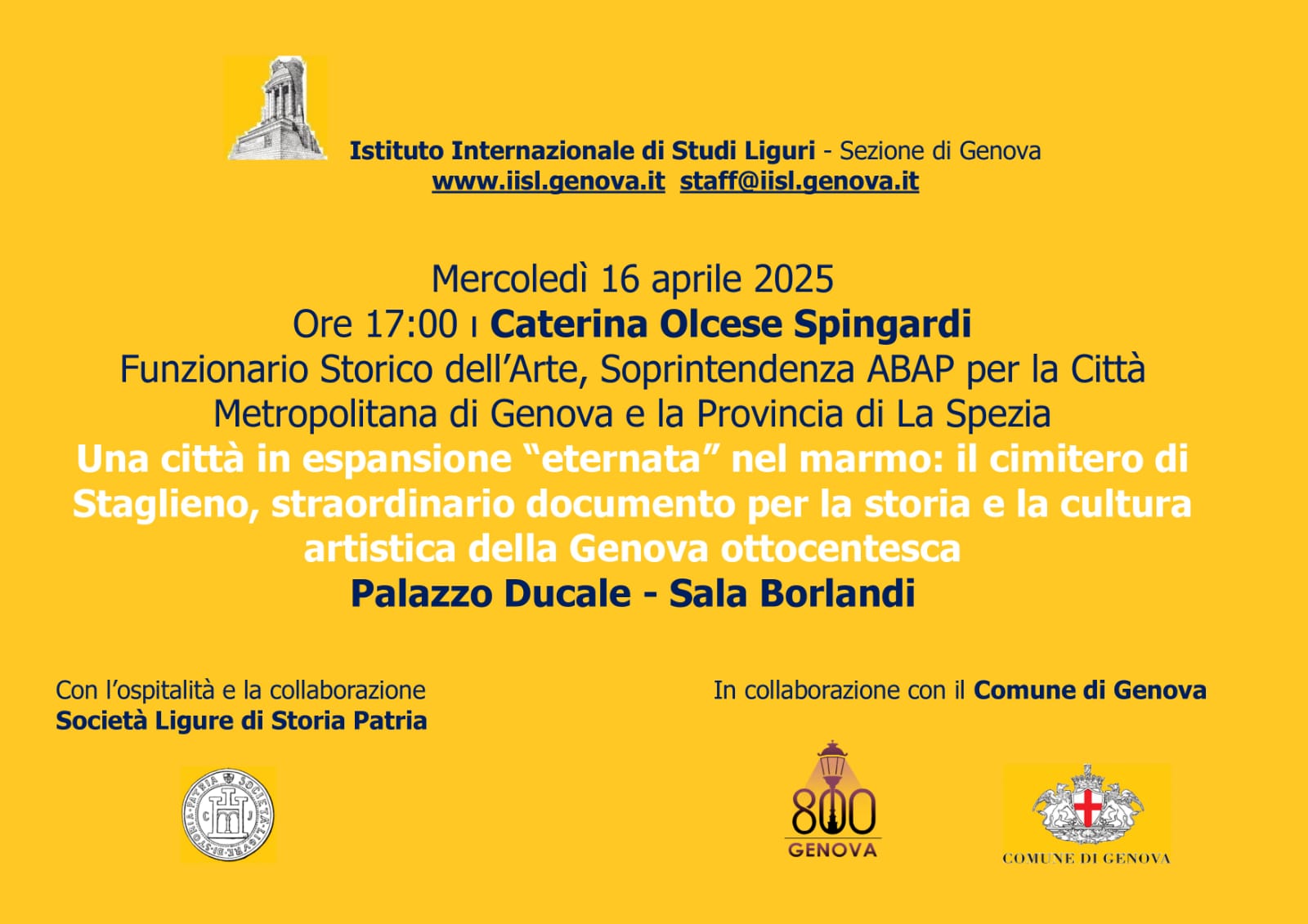 L’evento è realizzato in collaborazione con la Società Ligure di Storia Patria e il Comune di Genova.